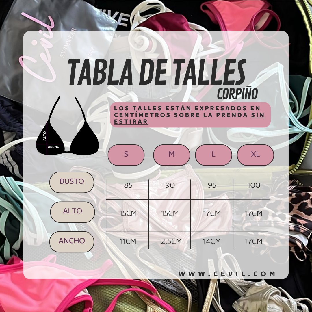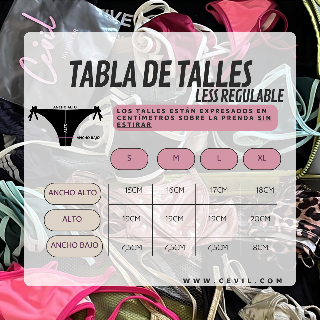 La bikini LUXIA esta confeccionada en lycra pesada de colores lisos. El top es de triángulo con tiras corredizas para atar en cuello y espalda. La bombi es estilo colaless con tiras PARA ATAR a los costados. Avio metalico importado de altisima calidad.